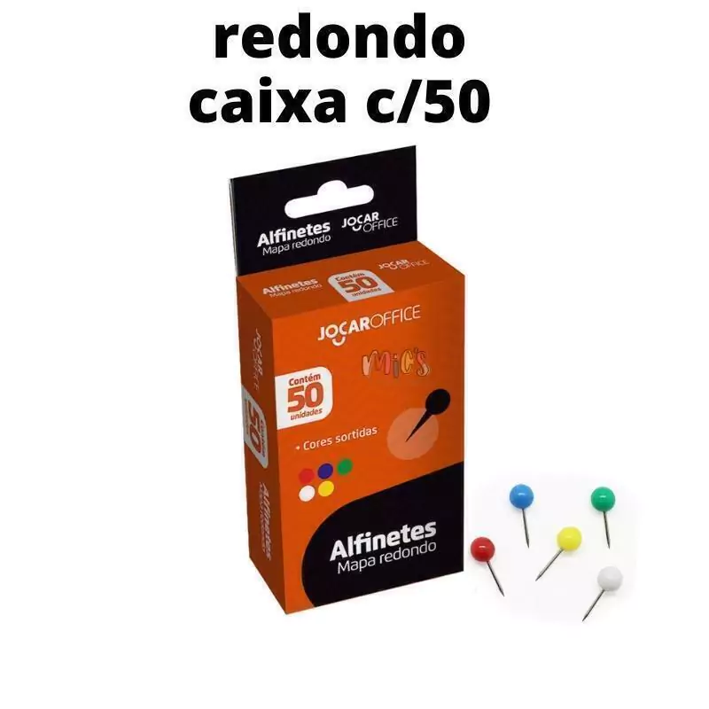 O Alfinete Mapa Redondo da Jocar Office contém 50 unidades de alfinetes nas cores azul, vermelho, amarelo e verde.