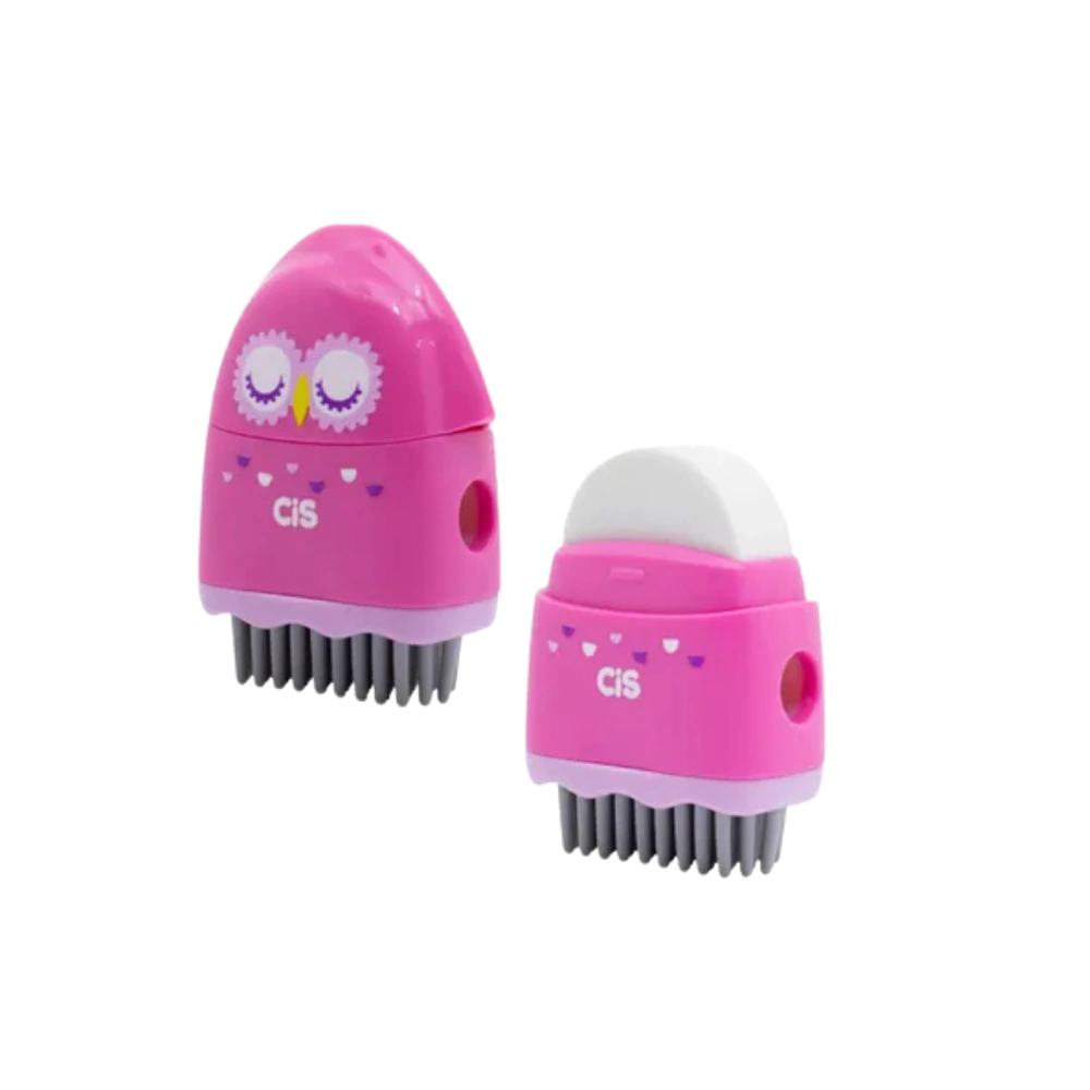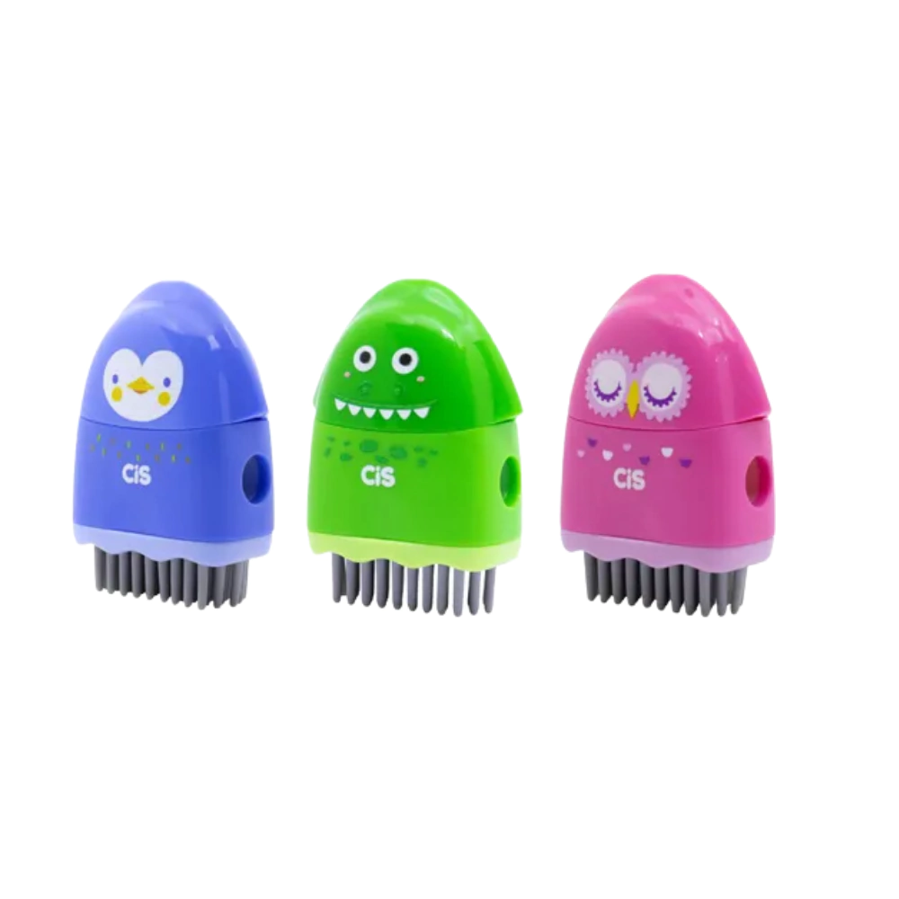 Novidade na CiS chegou o apontador com borracha e escovinha com carinhas de animais fofinhos e divertidos.