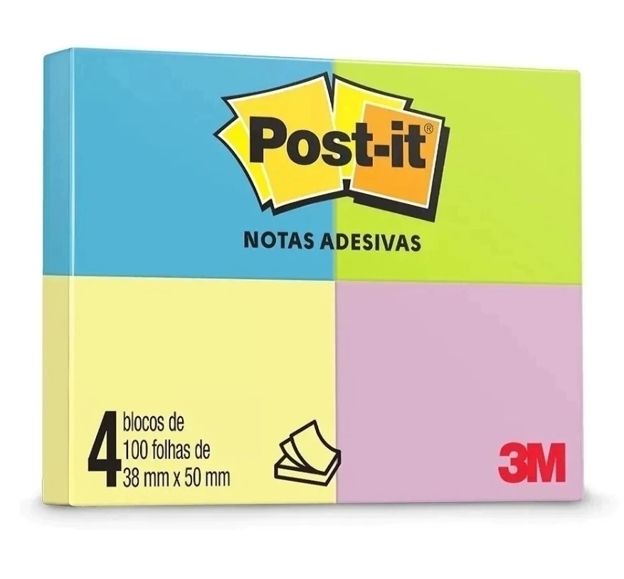 As Notas adesivas Post-it® tamanho 38 mm x 50 mm são ideais para pequenos recados e lembretes.