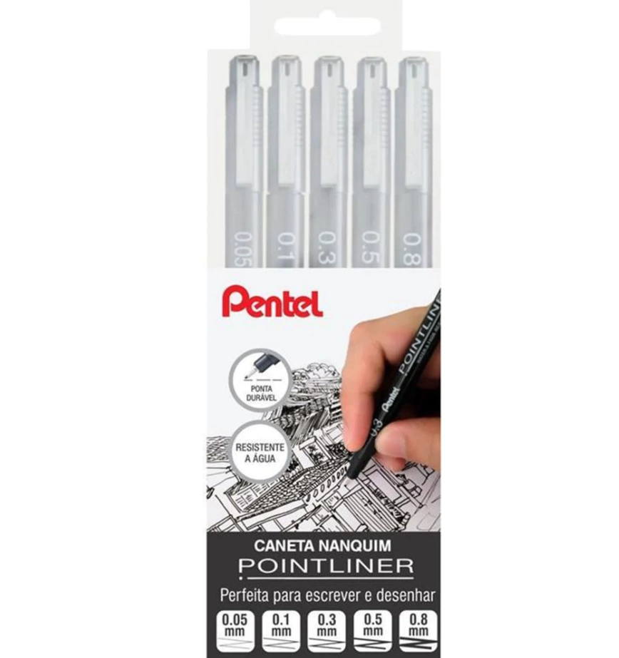 Caneta nanquim PENTEL técnica com 5 pontas