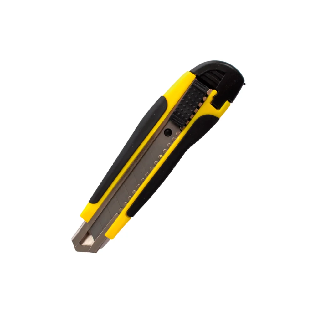 Estilete para cortes em papel, papelão, tecidos, plásticos, materiais sintéticos, entre outros.