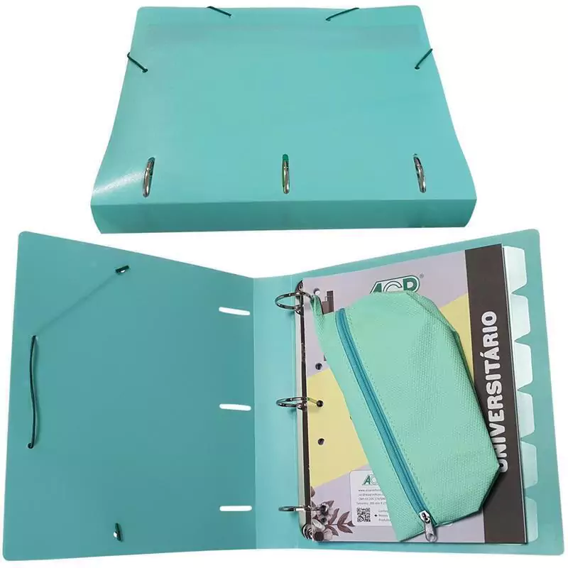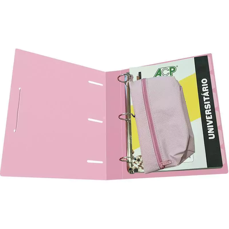 Fichário completo ACP pastel pvc c/estojo+divisórias 96F