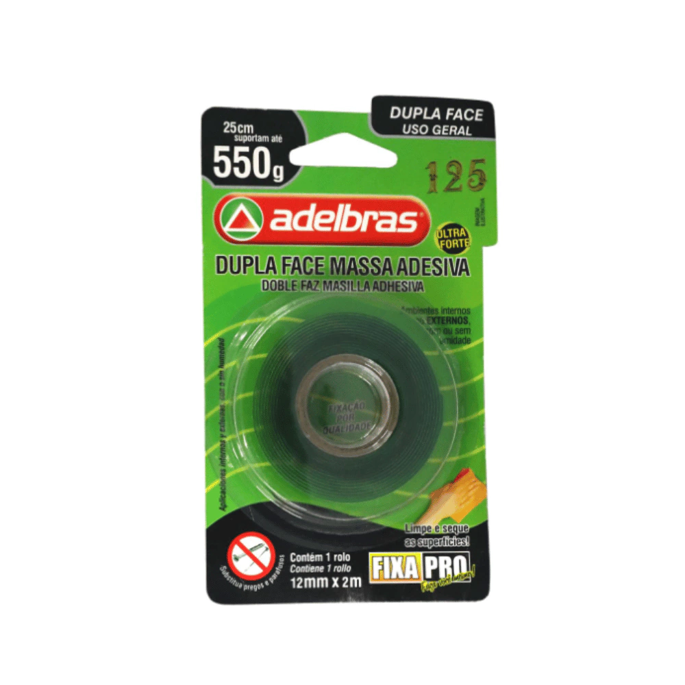 Fita dupla face ADELBRAS fixa pro massa acrilic 12mmx2m un