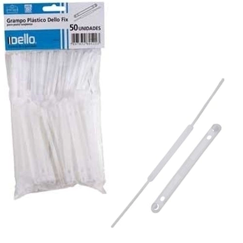 Grampo para pastas e folhas do tipo trilho de plástico injetado em polietileno.