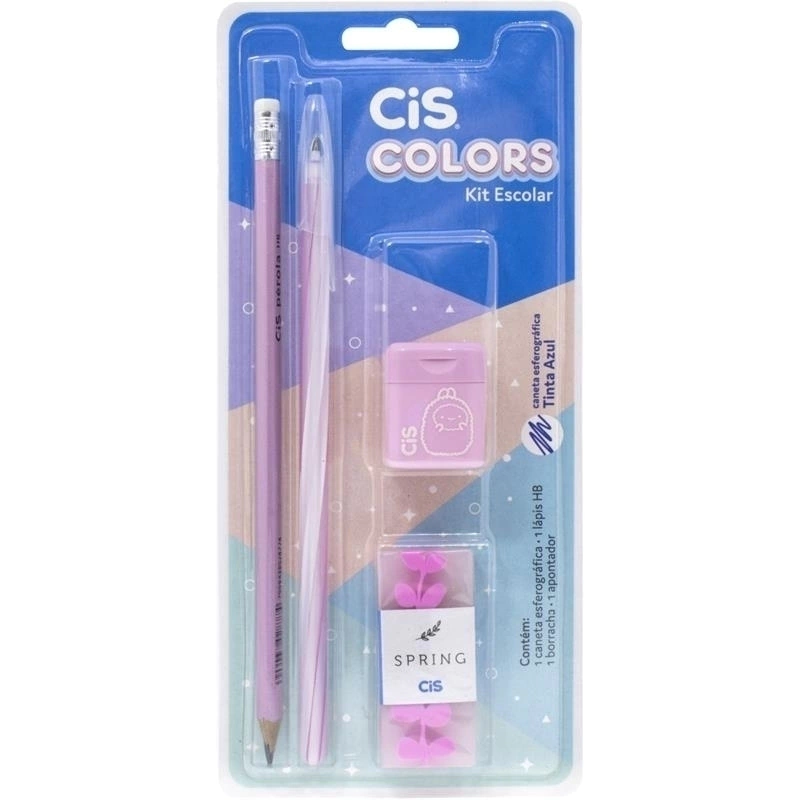 Kit escolar CIS colors com 4 peças cores variadas