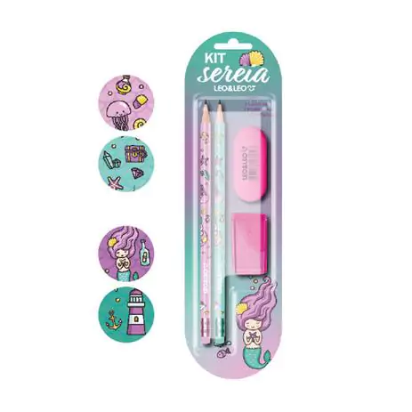 Ele vem com lapis grafite HB nº2, apontador e borracha.