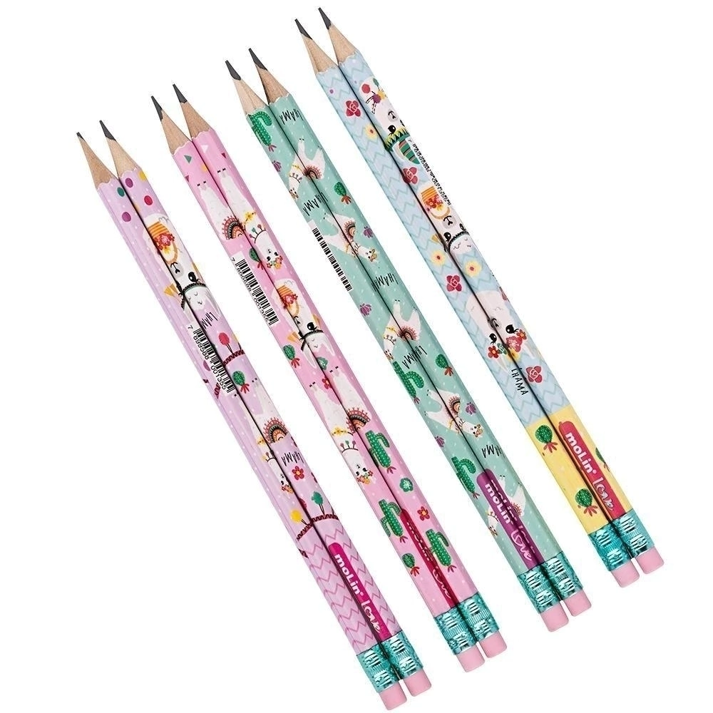 Lápis preto MOLIN love lhama HB n°2 blister c/4