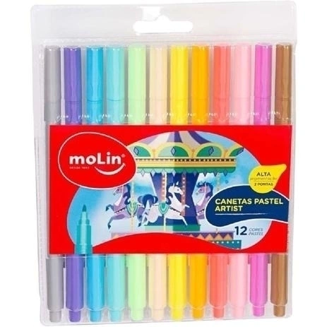 Canetas, com tinta pastel a base d'água, de alta pigmentação, com grande capacidade de tinta.