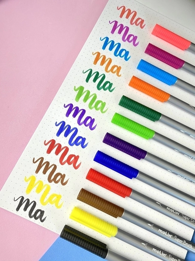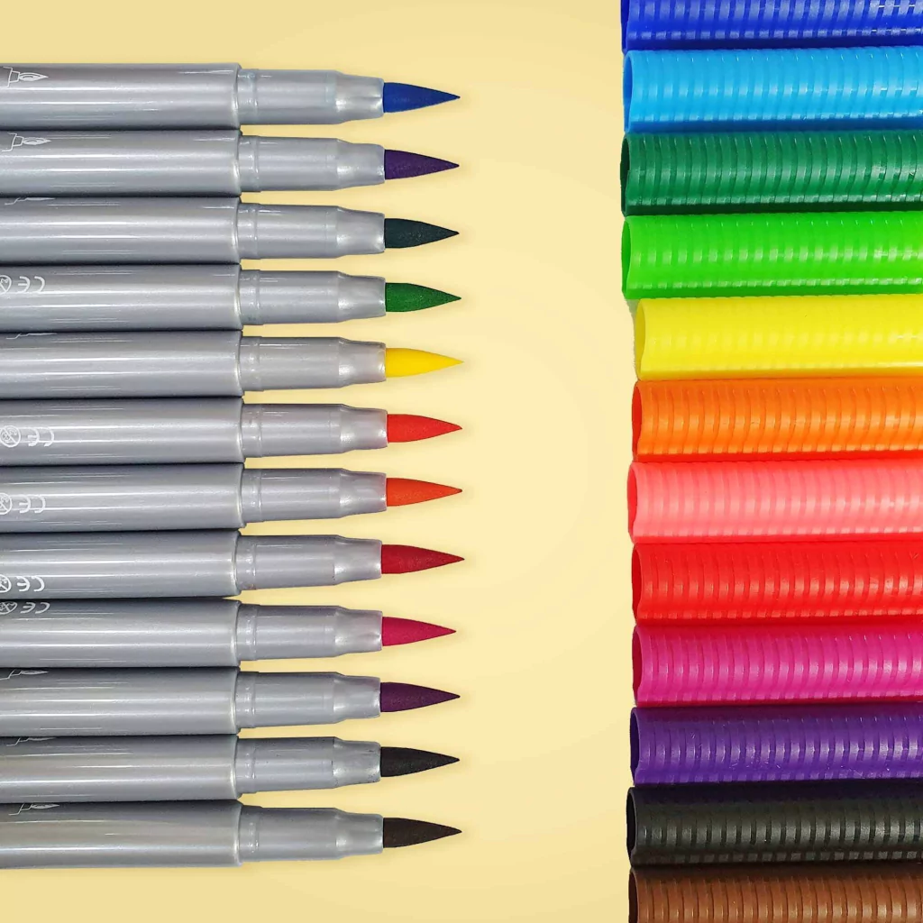 12 cores: marrom, lilás, vermelho, rosa, laranja, amarelo, verde, verde escuro, azul, azul escuro, roxo, preto