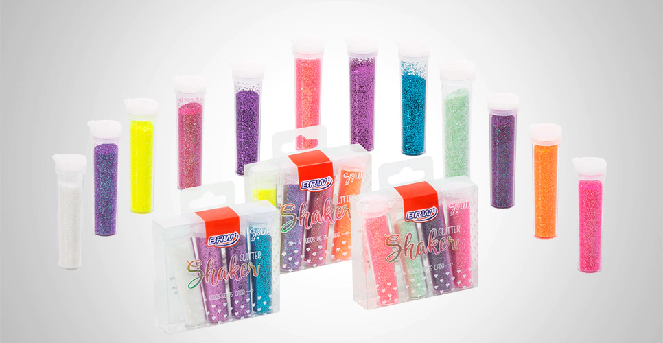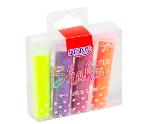 O Glitter Shaker BRW possui 4 cores e leva todo o brilho para os tubinhos individuais, agregando valor e conferindo mais visibilidade ao queridinho das crianças, adolescentes e artesãos! Com bico dosador super especial, o glitter sai na medida certa, evitando o desperdício!